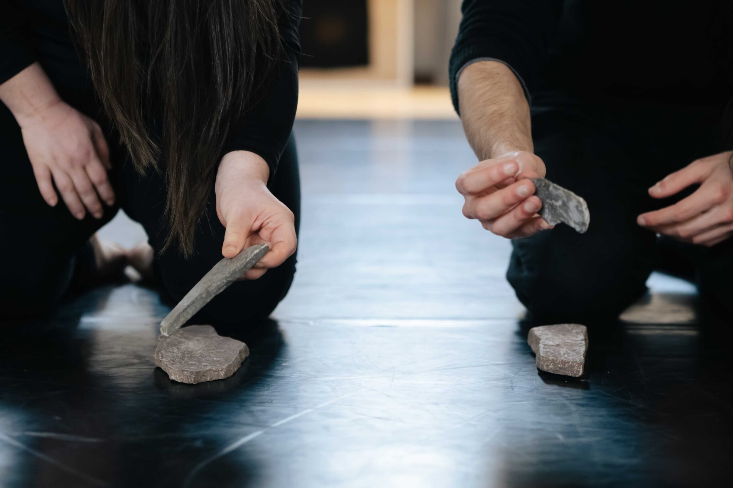 Un progetto coreografico che si sviluppa nella relazione tra gestualità e suono, e che vedrà sul palcoscenico la performer con sindrome di Down Laura Lucioli e il musicista Francesco Toninelli. La ricerca sonora è incentrata sulla dimensione fisica della musica, sul maneggiare oggetti naturali e minerali che vengono percossi, sfregati e roteati con tecniche elementari: una grancassa di pelle suonata dalle mani, una superficie per far risuonare i gesti e i materiali. La ricerca gestuale si sviluppa nel celare e svelare l’invisibile, lavorando in interconnessione con quella sonora e musicale, individuando nel movimento l’unità espressivo-relazionale generativa della composizione. Lo spettacolo sarà fruibile anche dal pubblico cieco con audiodescrizione poetica.