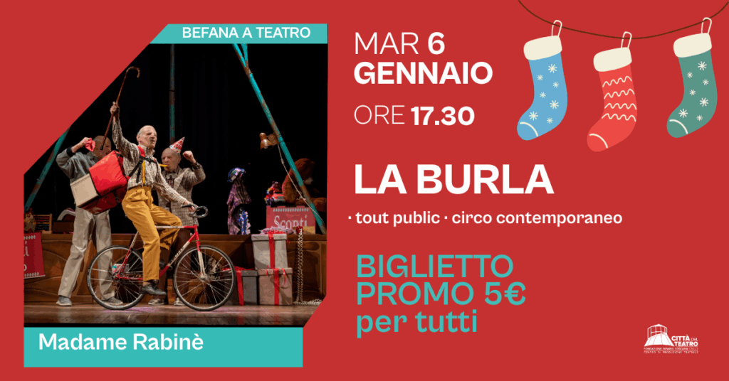 Un pomeriggio di magia, poesia e divertimento da vivere insieme. Martedì 6 gennaio alle 17.30, La Città del Teatro di Cascina celebra la Befana a Teatro con “La Burla”, spettacolo di circo contemporaneo firmato dalla compagnia Madame Rebiné.