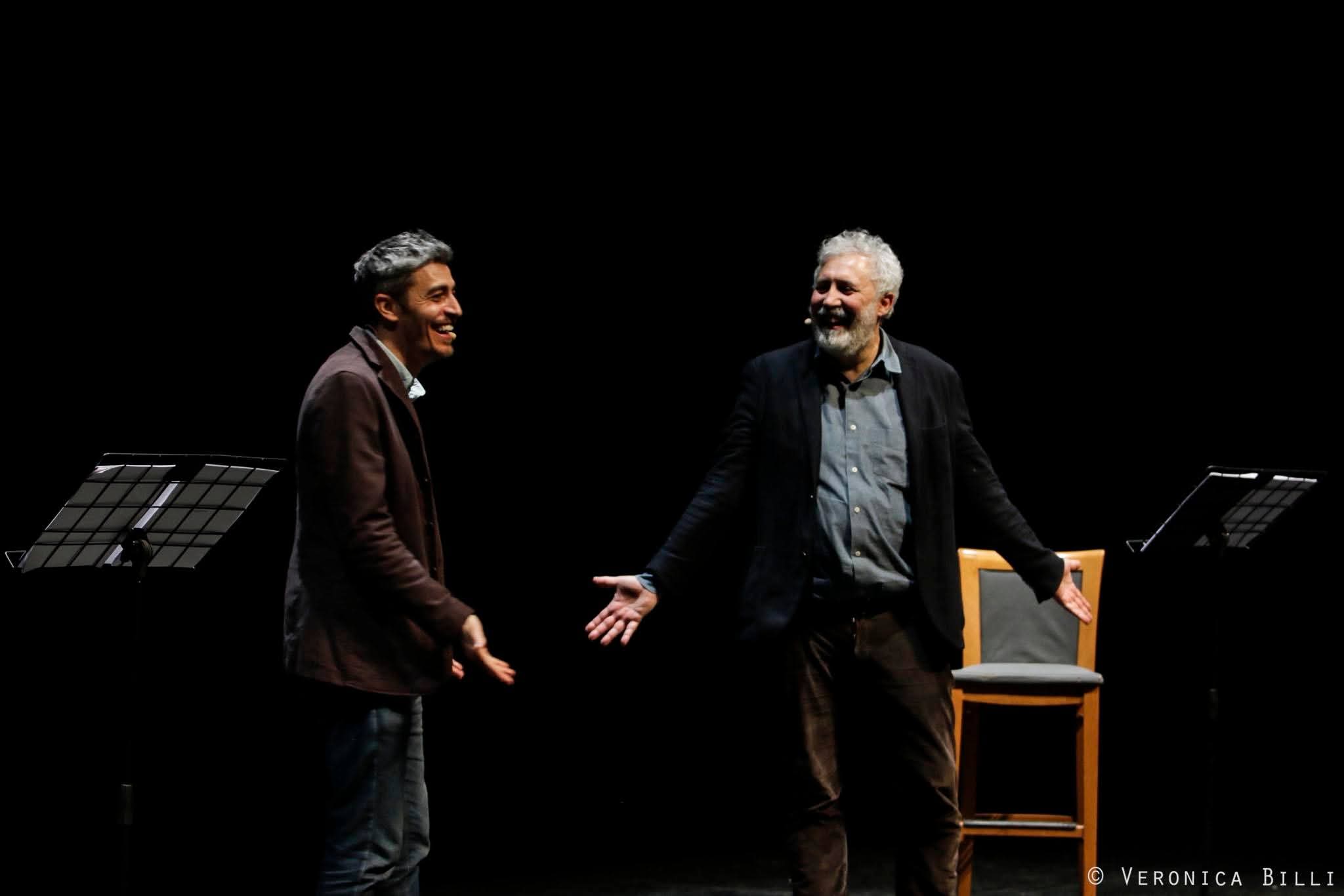 Un felice connubio tra teatro e letteratura, quasi un manifesto per la felicità. Da una parte uno scrittore Premio Strega e sceneggiatore, dall’altra un poliedrico personaggio televisivo, attore e regista.