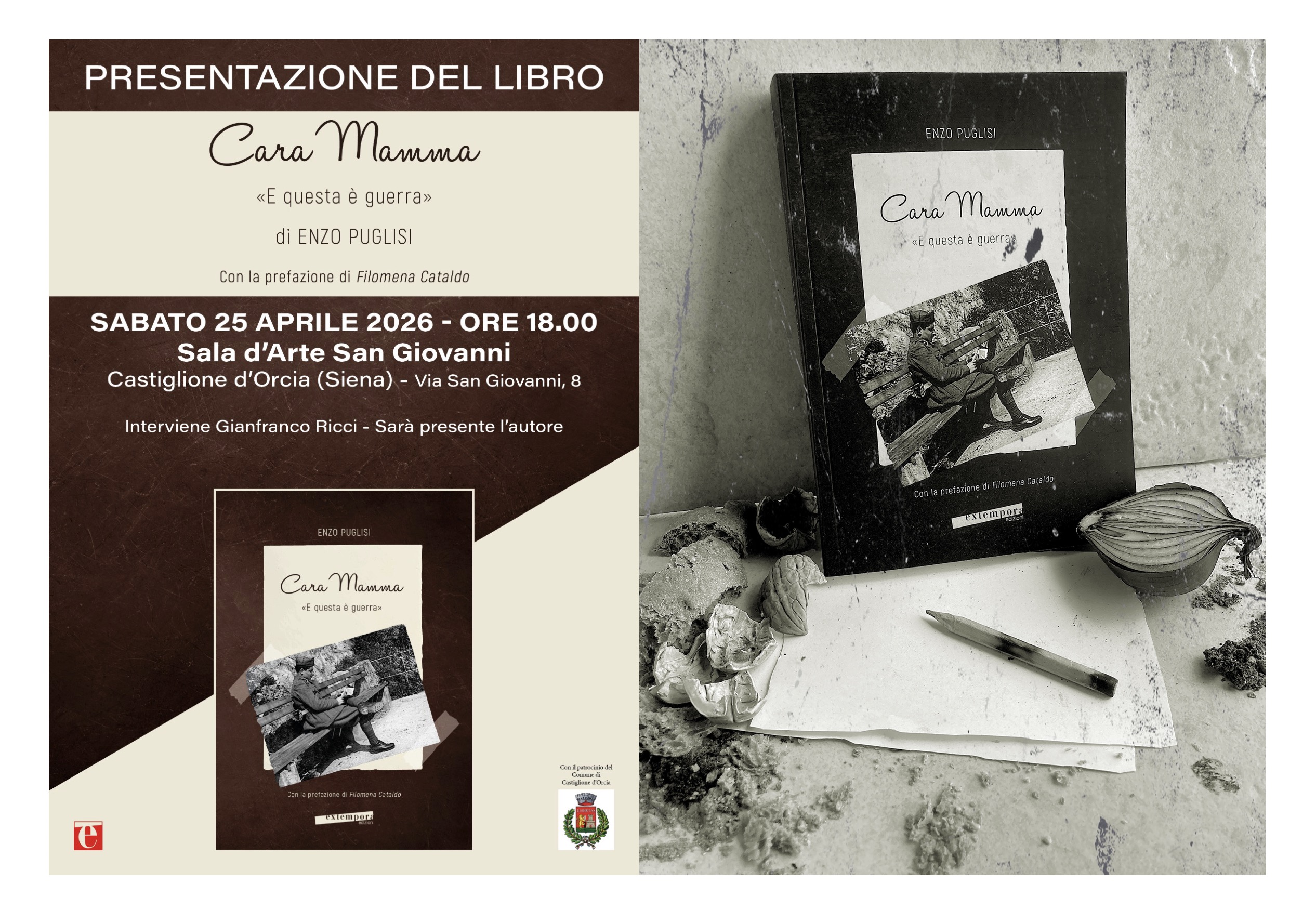 La forza della memoria contro l'atrocità della guerra. Questo il cuore del nuovo romanzo di Enzo Puglisi, "Cara mamma. E questa è guerra", edito da Extempora Edizioni.