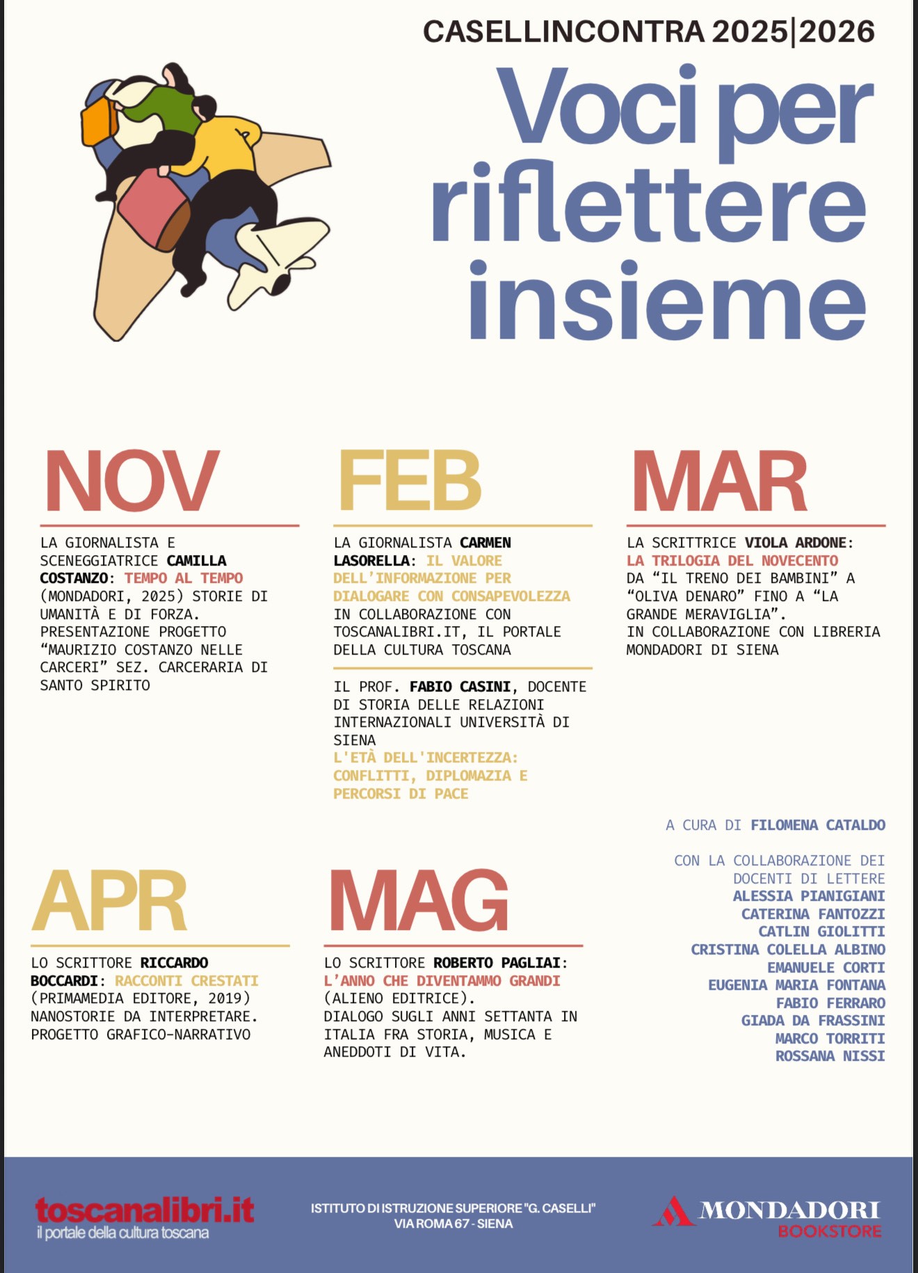 Riparte la rassegna culturale dell’Istituto Professionale Caselli di Siena “CasellIncontra”, giunta alla decima edizione, un appuntamento importante per la scuola e per il territorio.