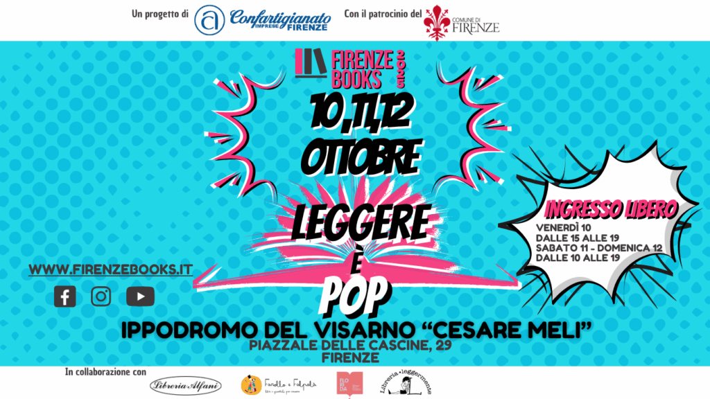 Firenze Books torna per la sua quinta edizione dal 10 al 12 ottobre. I tre giorni sono organizzati da Confartigianato Imprese Firenze in collaborazione con Libreria Alfani, Libreria Farollo e Falpalà, Libreria Florida, Libreria Leggermente e si svolgeranno nuovamente all’Ippodromo del Visarno, Piazzale delle Cascine 29, unendo lettrici e lettori, autrici e autori, in un evento ricco di incontri, presentazioni ed eventi dedicati a tutte le fasce di età