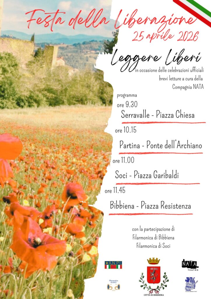 E le celebrazioni e l’amore per la cultura continueranno a Bibbiena fino al 25 aprile, con l’iniziativa del comune per promuovere il libro come mezzo di libertà. Nelle tappe di deposizione delle corone ai caduti quindi Serravalle alle 9,30, Partina 10,15, Soci 11, Bibbiena 11,45, si leggeranno alcuni passi dei libri che parlano della Resistenza e della libertà, per celebrare la pace e il sacrificio di tanti giovani per la democrazia.