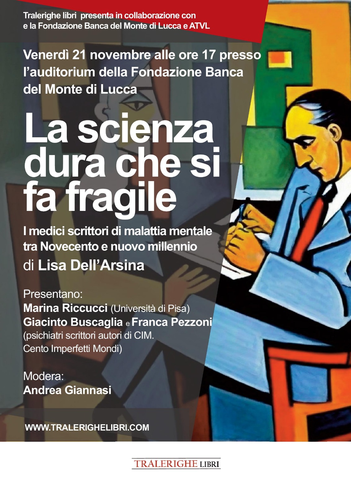 Venerdì 21 novembre alle 17 verrà presentato a Lucca, nell’auditorium della Fondazione Banca del Monte di Lucca in piazza San Martino, il saggio di Lisa Dell’Arsina “La scienza dura che si fa fragile. I medici scrittori di malattia mentale” (Tralerighe libri).