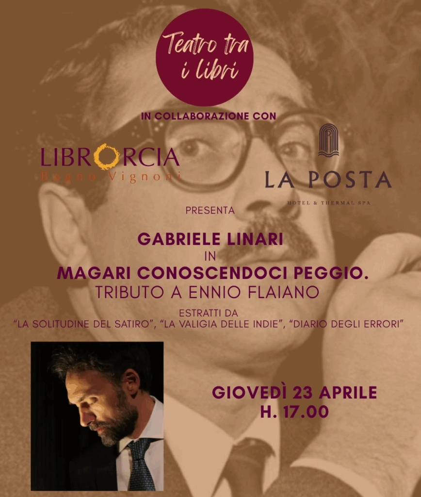 Libri, Teatro e Ospitalità senza tempo si incontrano in un evento speciale nel cuore di Bagno Vignoni: un pomeriggio dedicato a Ennio Flaiano, una delle figure più brillanti della cultura italiana del Novecento.