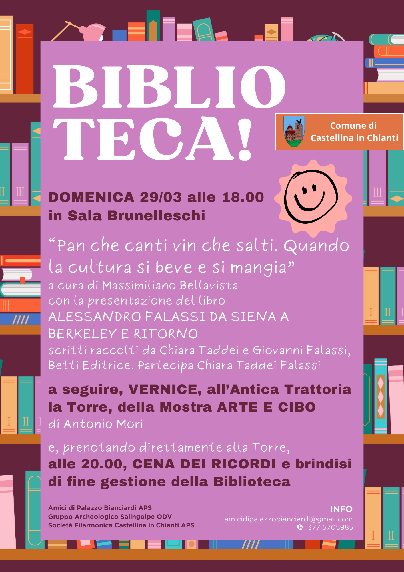 L'evento è a cura di Amici di Palazzo Bianciardi APS, Gruppo Archeologico Salingolpe ODV e Società Filarmonica Castellina in Chianti APS. Con il patrocinio del Comune di Castellina in Chianti.
