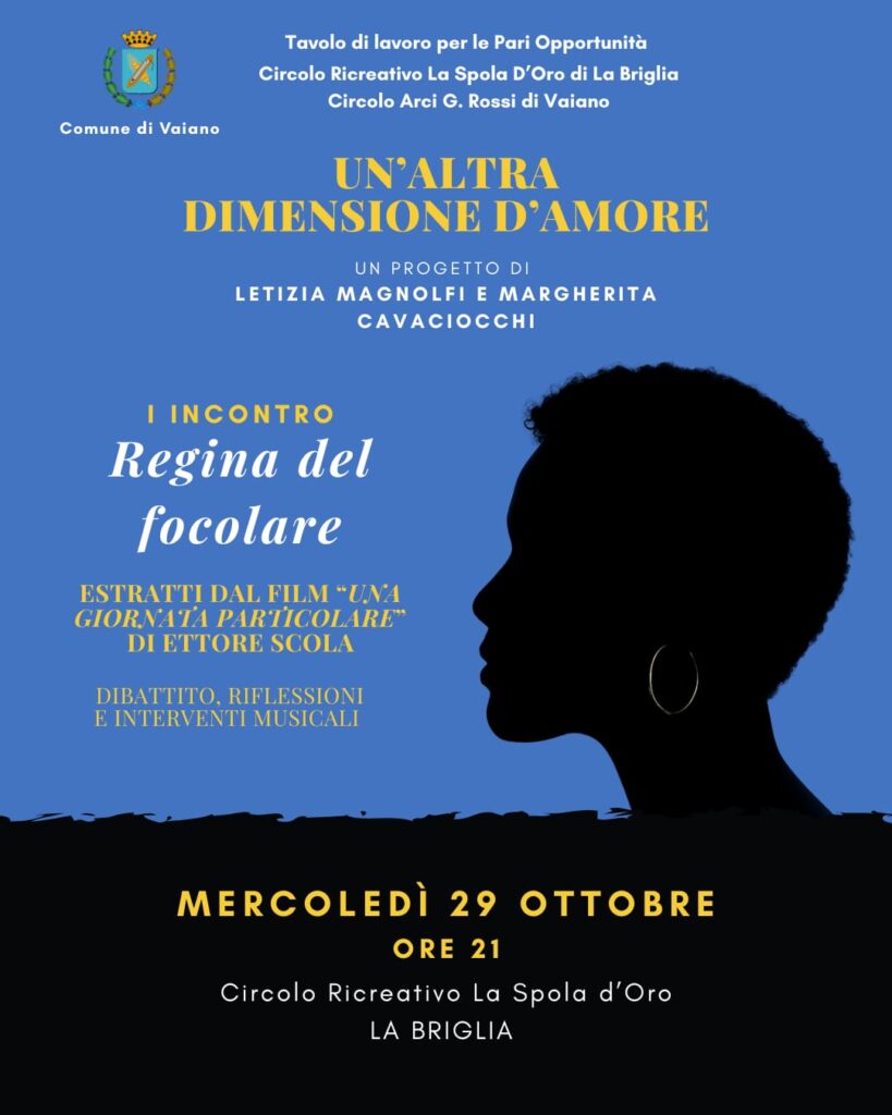 Sarà dedicato al tema “Regina del focolare” il primo appuntamento della rassegna “Un’altra dimensione d’amore”, in programma mercoledì 29 ottobre alle 21 al circolo Arci La Spola d’Oro de La Briglia di Vaiano (Prato).