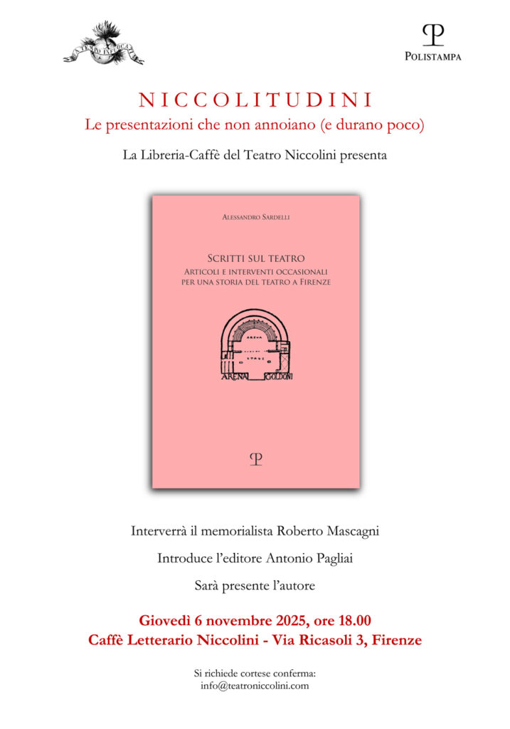 Teatro di prosa e di rivista, con testi di stampo populista e nazionalista, ma anche drammi sacri, vernacolo, burattini. Il mondo teatrale fiorentino ai tempi del fascismo è oggetto di un’analisi storica nel nuovo libro di Alessandro Sardelli intitolato "Scritti sul teatro" (Polistampa). Il volume sarà presentato giovedì 6 novembre alle 18 al Teatro Niccolini di Firenze (via Ricasoli, 3-5) dal memorialista Roberto Mascagni. Saranno presenti l’autore e l’editore.