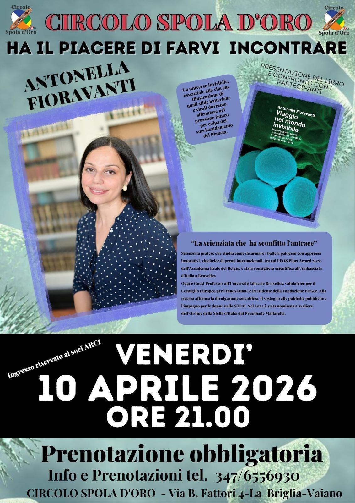 Il primo appuntamento, in programma venerdì 10 aprile, vedrà protagonista Antonella Fioravanti, microbiologa pratese di fama internazionale, ricercatrice e docente universitaria a Bruxelles, tra le maggiori esperte nel campo dei microrganismi e della salute globale. Fioravanti è nota per , riuscendo ad individuare un metodo per “disarmarne” la struttura protettiva e aprendo nuove prospettive nella lotta ai patogeni resistenti agli antibiotici. Nel corso della serata presenterà il suo libro “Viaggio nel mondo dell’invisibile”, accompagnando il pubblico alla scoperta del mondo dei microrganismi, tra salute, cambiamento climatico e sfide future della ricerca scientifica.