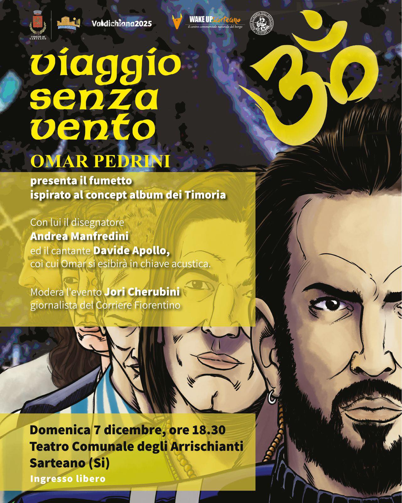 L’appuntamento è per domenica 7 dicembre alle 18.30, presso il Teatro degli Arrischianti, quando Pedrini presenterà la sua graphic novel, ispirata allo storico concept album della band, presentata ufficialmente a Lucca Comics & Games e pubblicata in allegato all’album “Viaggio senza vento - Live in Lucca”, che raccoglie la performance dal vivo della Omar Pedrini Band registrata nel 2024 durante la manifestazione.