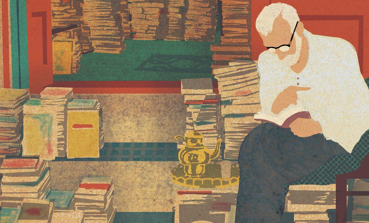 Julien, però, vorrebbe anche documentare come in quel teatro di non-vita, la vita provi a darsi la normalità perduta. Approfitta così di una giornata di tregua dai bombardamenti per addentrarsi nella parte di città un po’ meno devastata, dove una parvenza di quotidianità si ostina ad esistere. Scorge così un uomo seduto fuori dalla sua bottega, “la vetrina circondata da centinaia di libri, la porta aperta su migliaia d’altri. E altre centinaia posate direttamente sul marciapiede, su un telone moribondo”. Costui è tra coloro che resistono alla disperazione. Si chiama Nabil, e “ogni mattina apre la sua libreria sotto le bombe”.